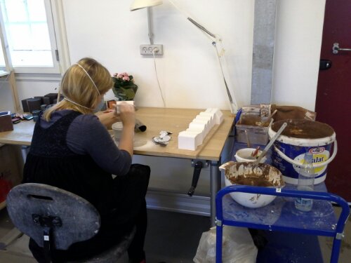 I have been part of Project Network 2012 at Guldagergaard International Ceramic Research centre in Demark for the past four weeks. It has been a fantastic experience so far; I have enjoyed the opportunity to study with other Ceramic makers from all around the world. As a group of eight makers from five countries we are producing sculptural, conceptual and functional wares, sharing skills in hand building, potting, and mould making. Working towards producing a piece of work for an exhibition in two weeks at the AppleHouse gallery here at Guldag6ergaard after which it will be display at the Grimmerhus museum of international ceramic Art. Below are a few pictures of the house, some tests for my installation and a couple of other makers at Project Network.