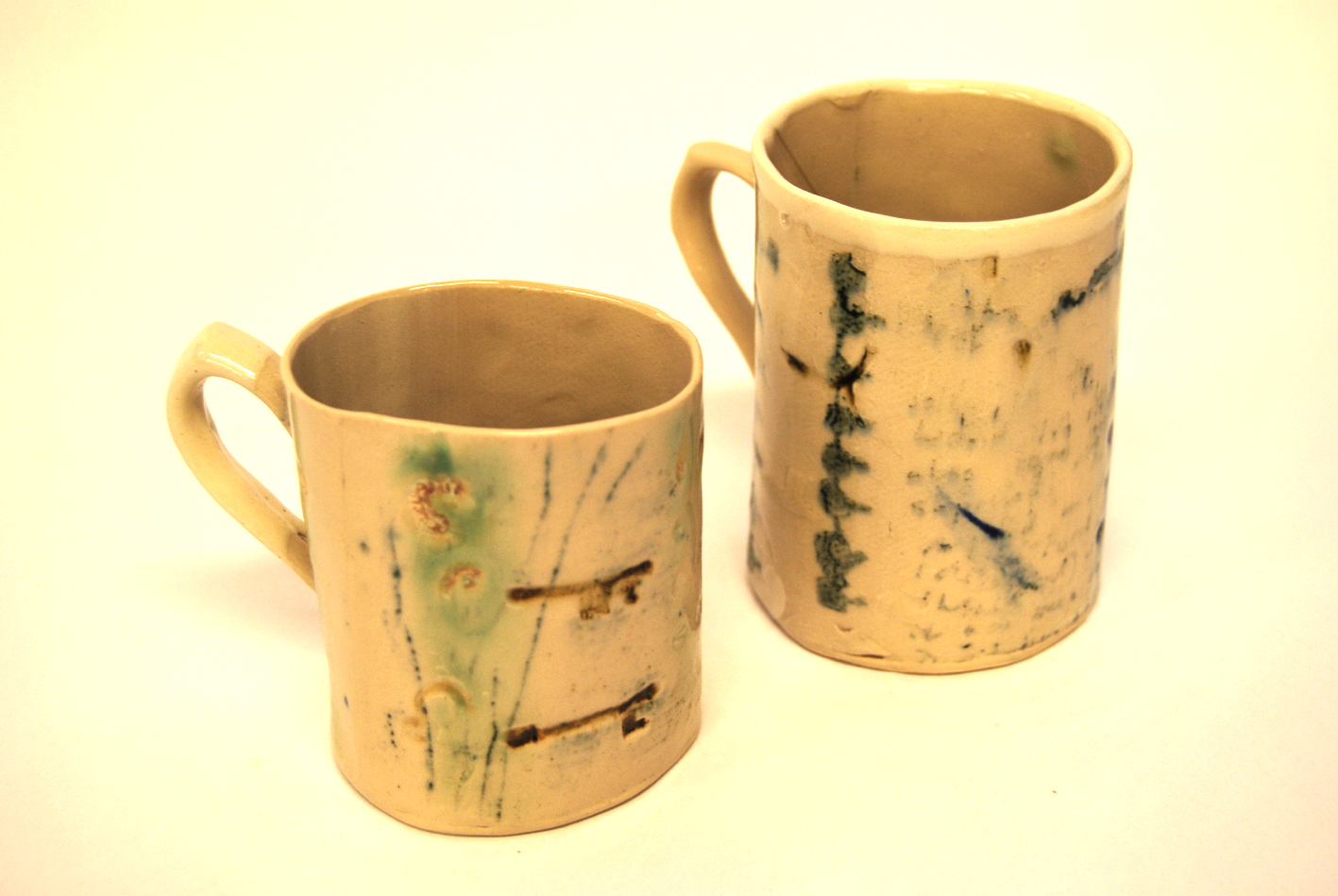 Previous Image Next Image screen printed mugs Hand built porcelain cups, screen printed. Gold lustre handle.