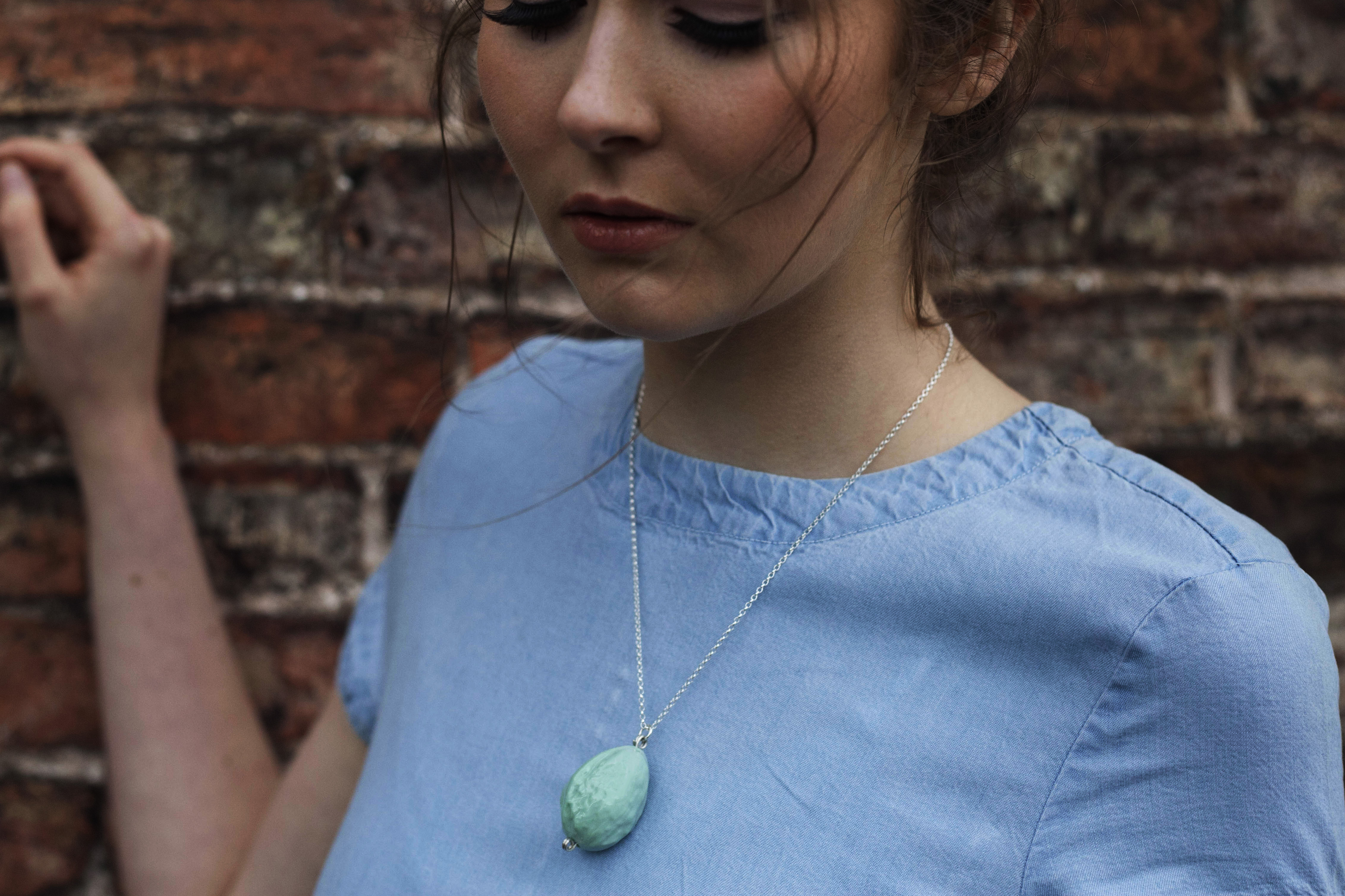 Green porcelain walnut pendant