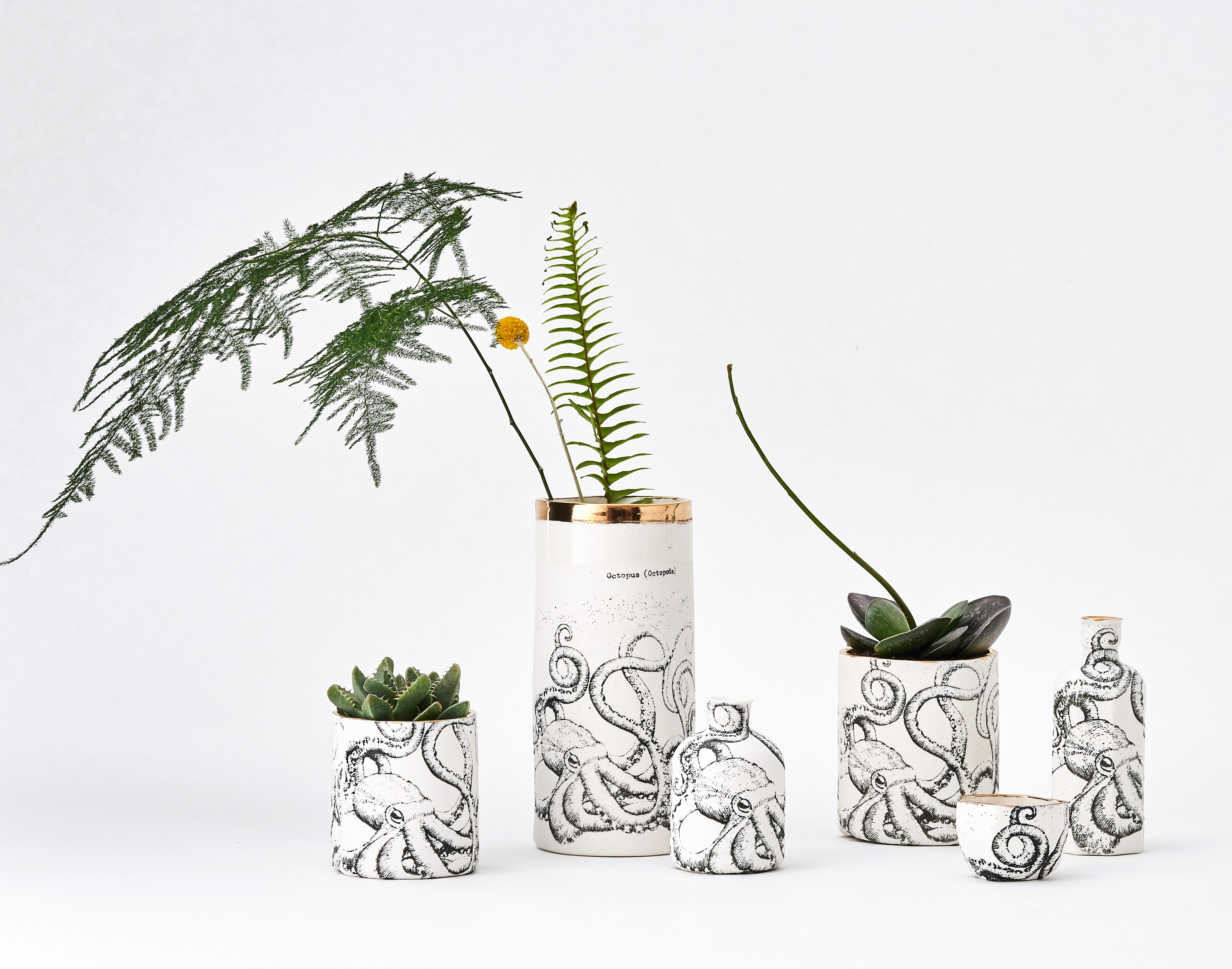 Porcelain octopus print vessels